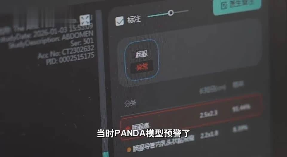 从朱院长的话头里这位“神秘的医生”,范奶奶素未谋面的救命恩人,终于揭晓了AI医生“PANDA”,一款由阿里巴巴达摩院研发的胰腺癌AI早筛模型,它能从看似并无异常的平扫CT影像中,捕捉到胰腺癌变的迹象