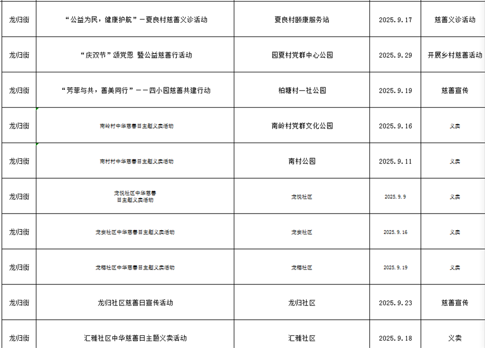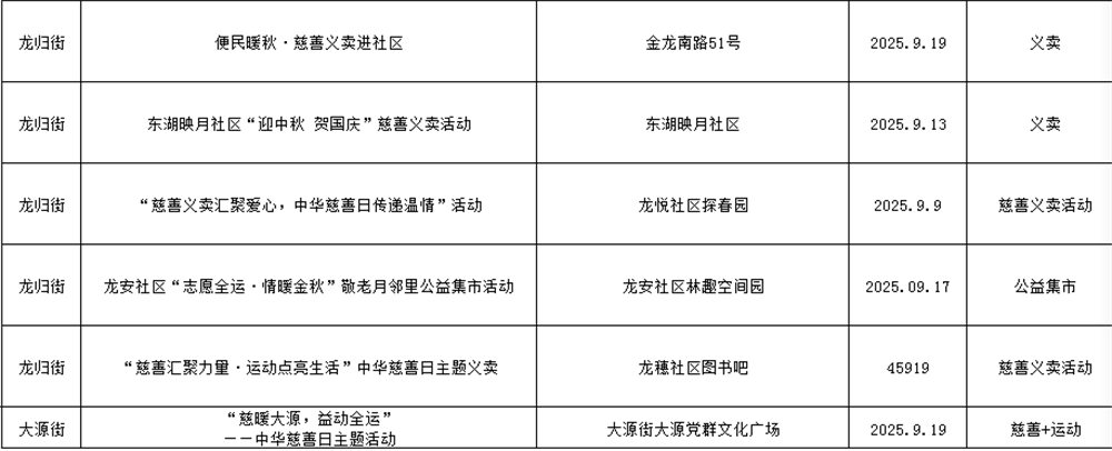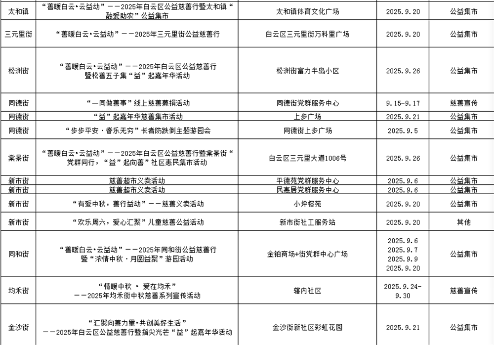9月全区多个镇街将接力开展30多场慈善主题活动。