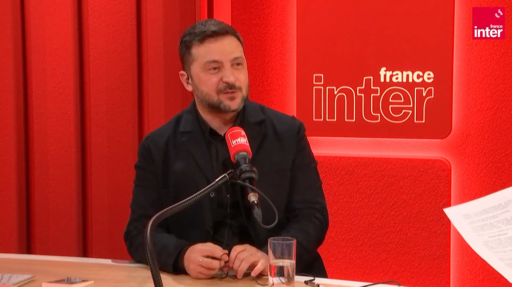 当地时间3月13日,泽连斯基参加法国国际广播电台一档节目。 视频截图