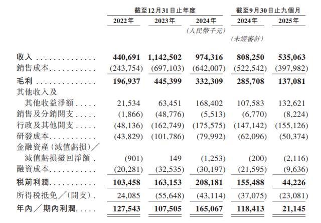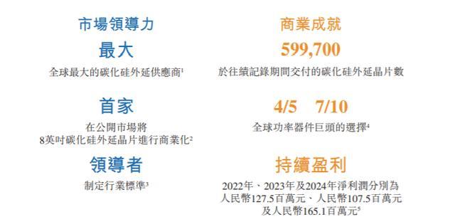 业绩方面,于2022年度、2023年度、2024年度及2025年度截至9月30日止九个月,瀚天天成收入分别约4.41亿元、11.43亿元、9.74亿元及5.35亿元;同期,年内/期内利润分别约为1.28亿元、1.08亿元、1.66亿元及0.21亿元。