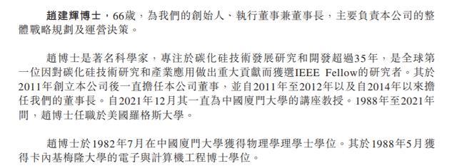 赵建辉是著名科学家,专注于碳化硅技术发展研究和开发超过35年,是全球第一位因对碳化硅技术研究和产业应用做出重大贡献而获选IEEE Fellow的研究者。其于2011年创立瀚天天成后一直担任公司董事,并自2011年至2012年以及自2014年以来担任瀚天天成的董事长;自2021年12月其一直为中国厦门大学的讲座教授。1988年至2021年间,赵博士任职于美国罗格斯大学。